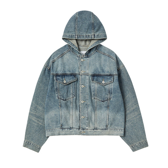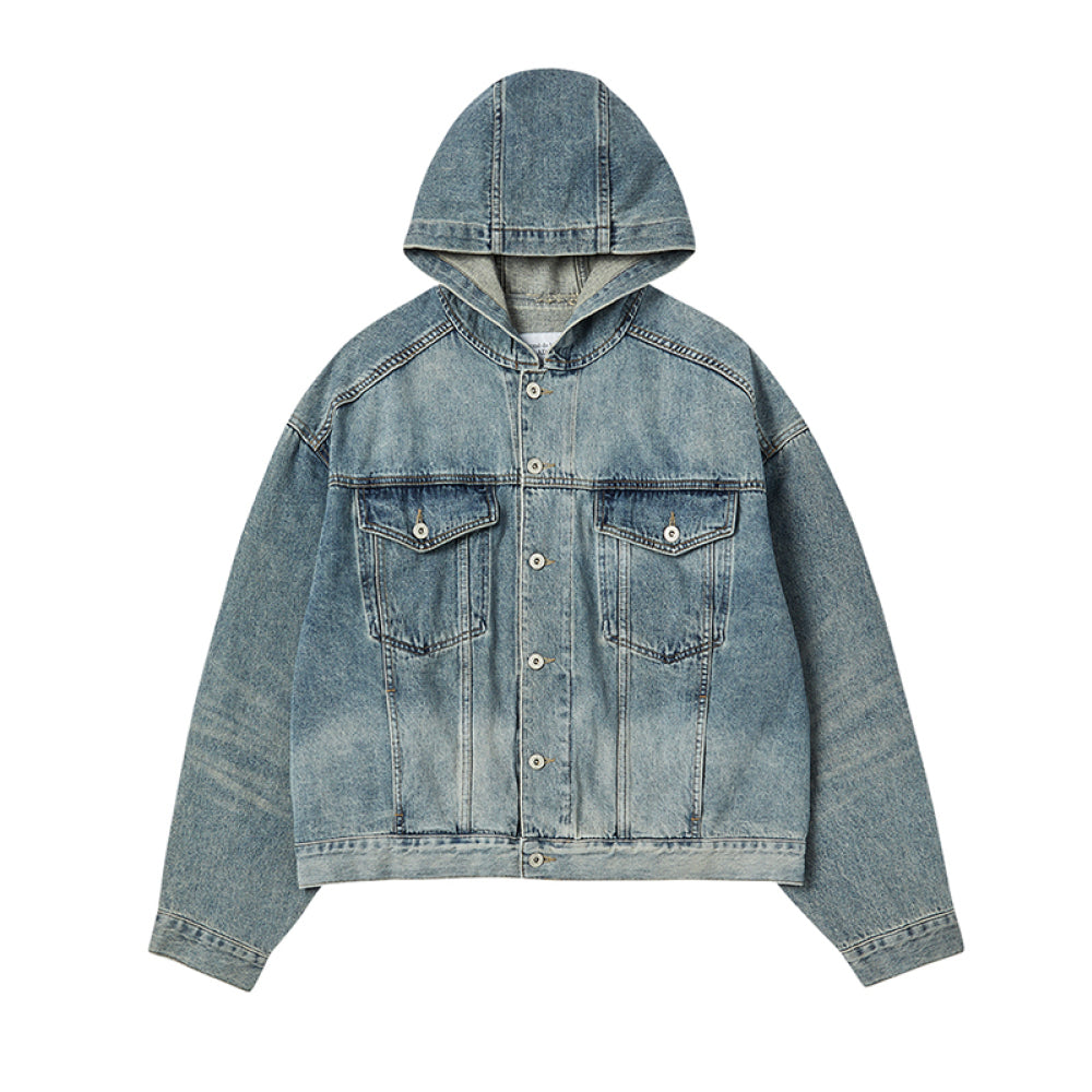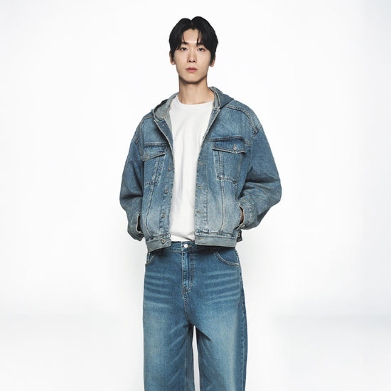 OVERSIZE DENIM HOODIE TRACKER JACKET BLU