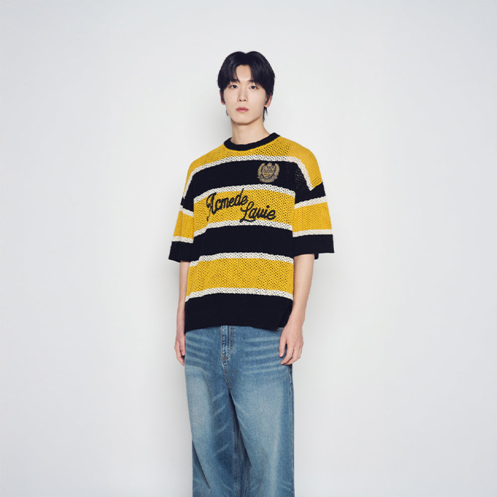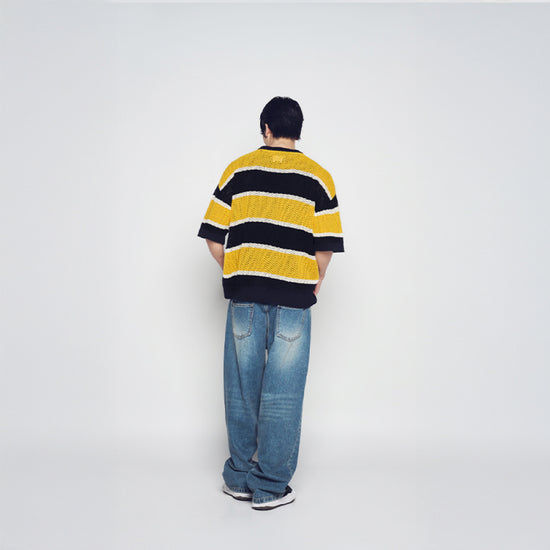 OVERSIZE STRIPE SHORT SLEEVE KNIT YELLOW