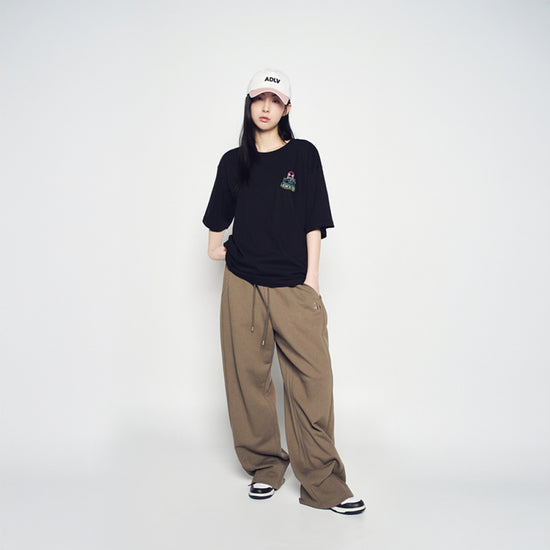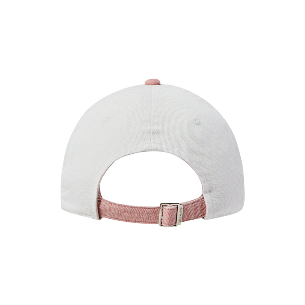 A soft pigment-washed pink ballcap with ADLV’s leather patch detail, bringing a gentle pastel mood to everyday casual style.