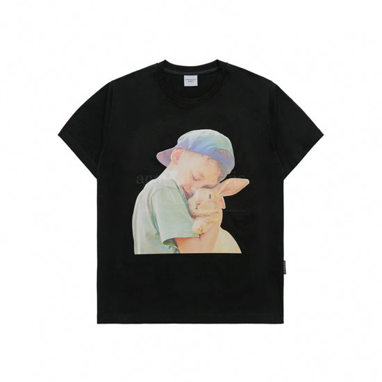 RABBIT HUG BOY BABY FACE SHORT SLEEVE T-SHIRT (OVERSEAS EXCLUSIVE) BLACK