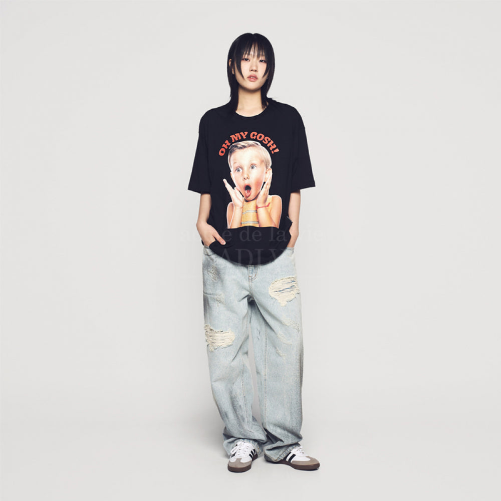 SCREAM BOY LETTERING BABY FACE SHORT SLEEVE T-SHIRT BLACK