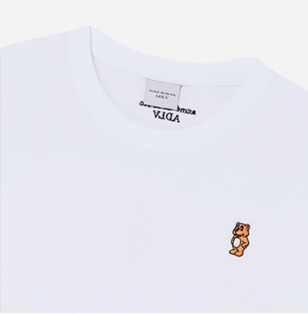 A simple yet playful design that captures ADLV’s signature charm. The Stand AC Bear Short Sleeve T-shirt in white features a clean minimal silhouette accented by an embroidered teddy bear graphic on the chest. Crafted from 100% premium cotton, it offers a soft touch, breathable comfort, and excellent shape retention. Its crisp white tone makes it an easy match for any outfit, from casual to streetwear looks.