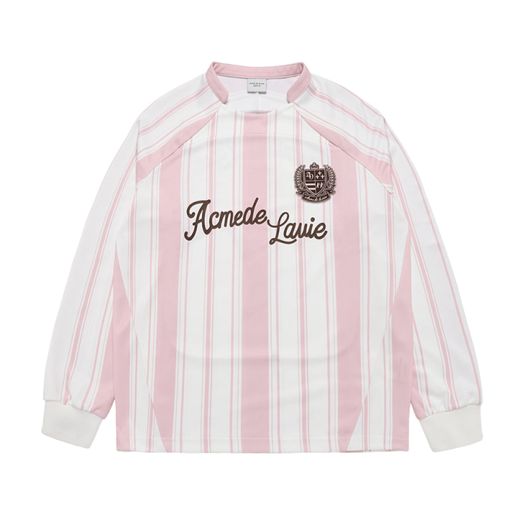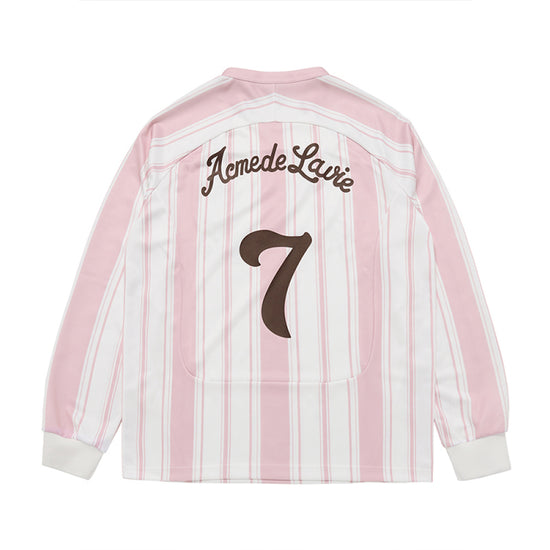 STRIPE FOOTBALL JERSEY LONG SLEEVE T-SHIRT LIGHT PINK