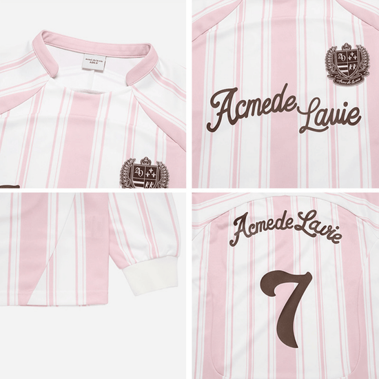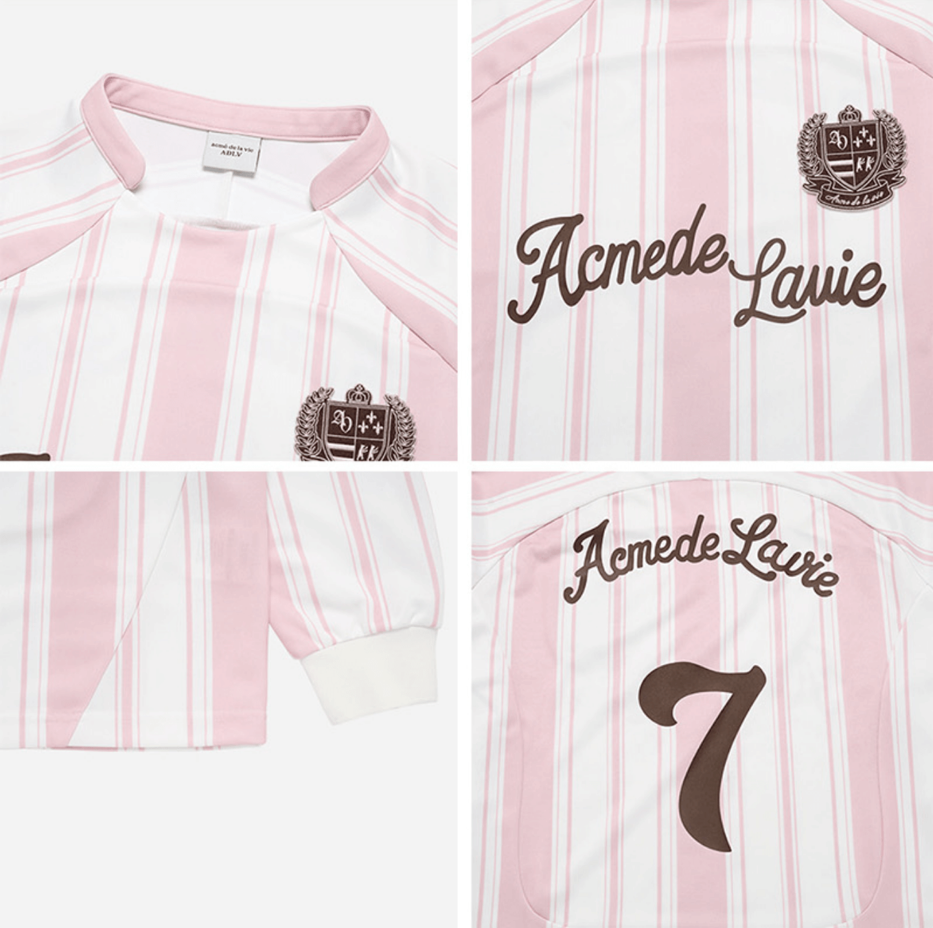 STRIPE FOOTBALL JERSEY LONG SLEEVE T-SHIRT LIGHT PINK | 100% Cotton | Made in Korea