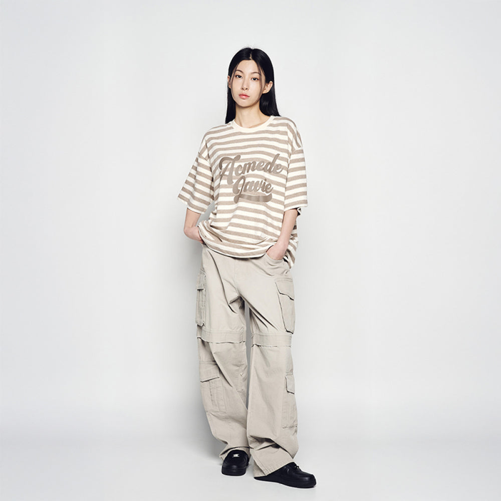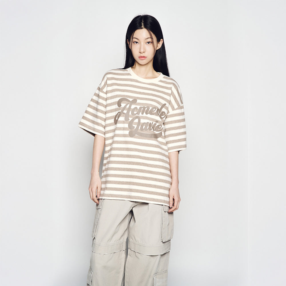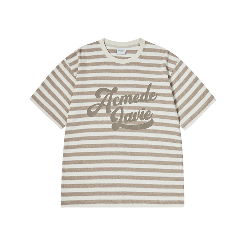 STRIPE LOGO PRINT SHORT SLEEVE T-SHIRT BEIGE