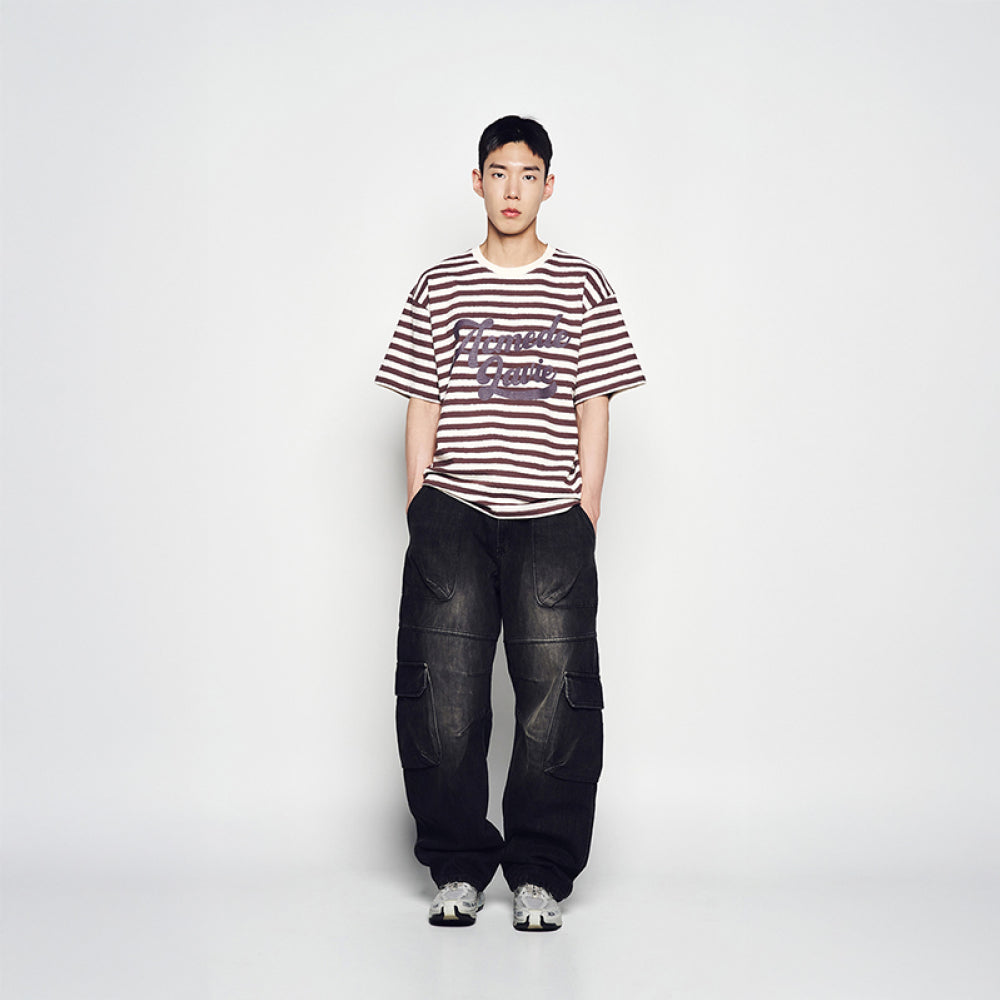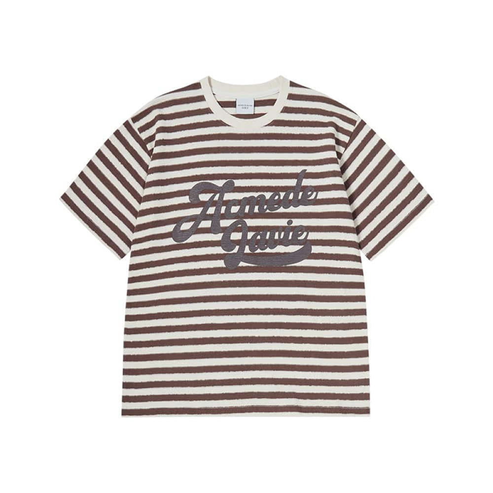 STRIPE LOGO PRINT SHORT SLEEVE T-SHIRT DARK BROWN