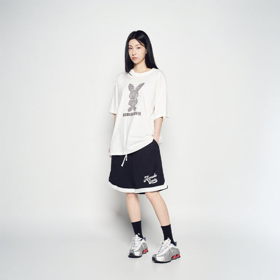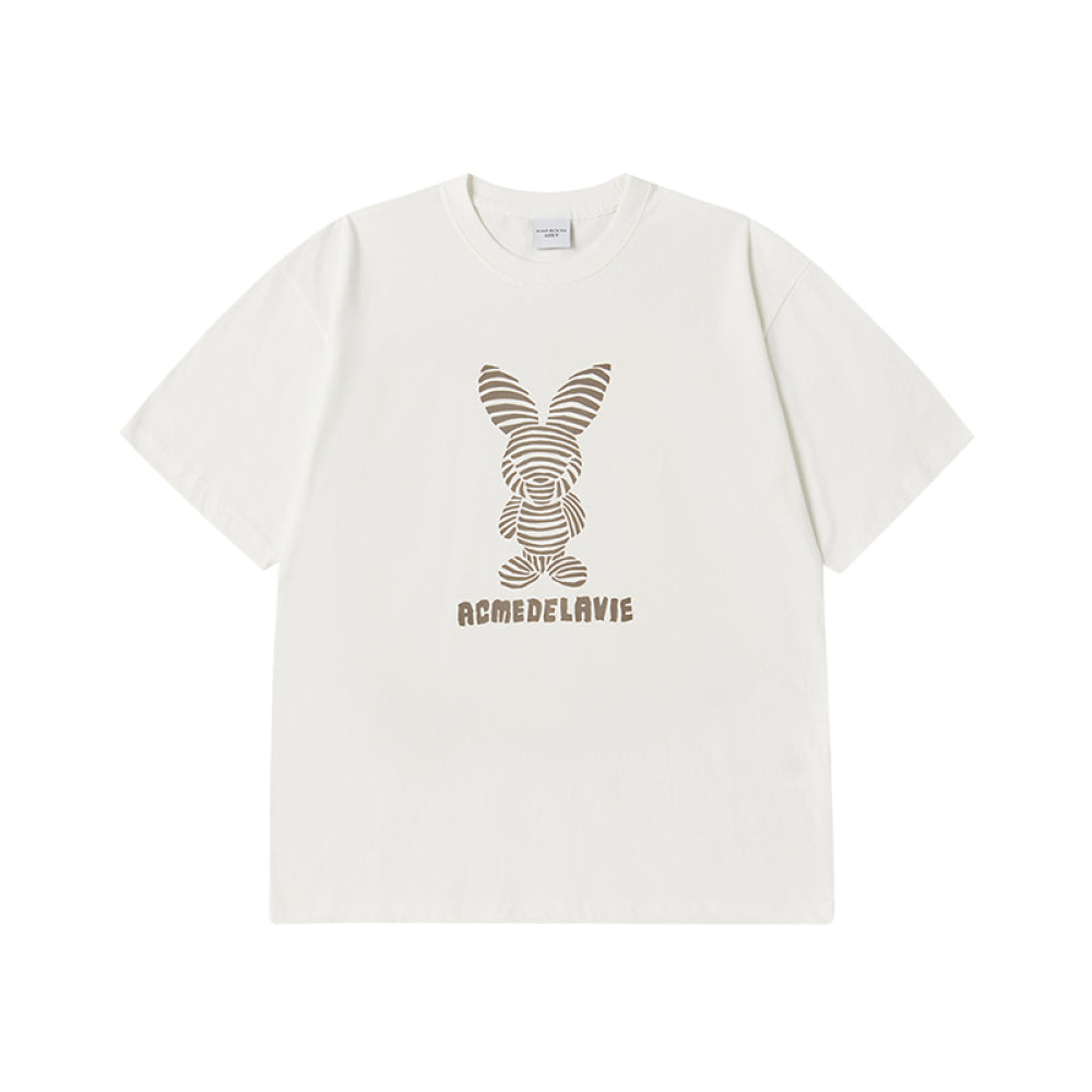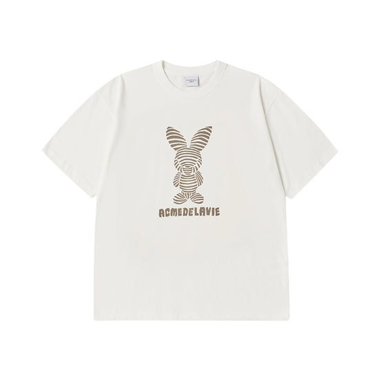 A soft and refreshing cream-colored tee featuring ADLV’s signature striped rabbit graphic, offering a clean, playful, and versatile look for everyday styling.