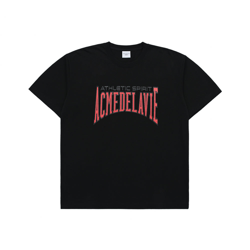 VARSITY LOGO EMBOSSING PRINTING SHORT SLEEVE T-SHIRT BLACK