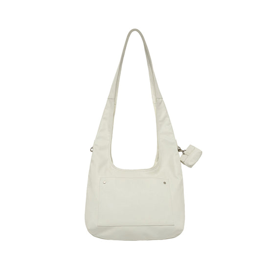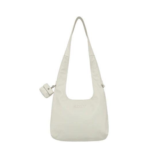 VEGAN LEATHER STITCH LOGO POINT SHOULDER BAG WHITE