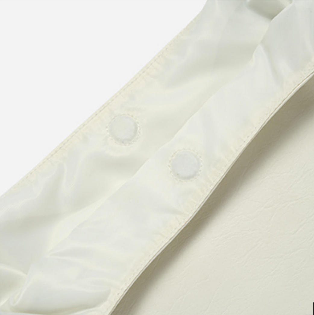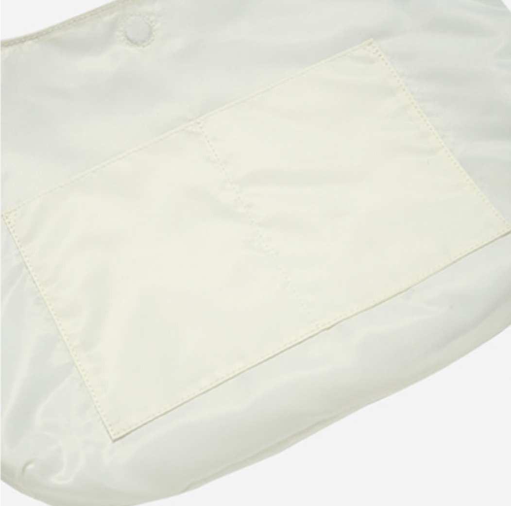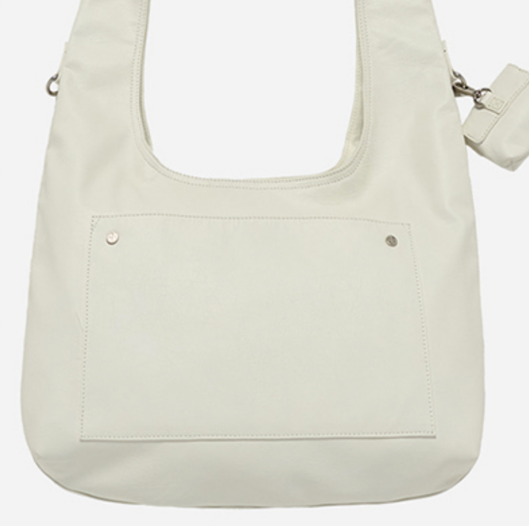 The VEGAN LEATHER STITCH LOGO POINT SHOULDER BAG in White offers a clean, modern look with sustainable craftsmanship. Made from high-quality vegan leather, this bag delivers a luxurious texture while remaining eco-friendly. The minimalist design is enhanced by delicate stitching details and a subtle logo point, creating a sophisticated yet versatile accessory that fits effortlessly with any outfit. Perfect for both casual and semi-formal occasions.