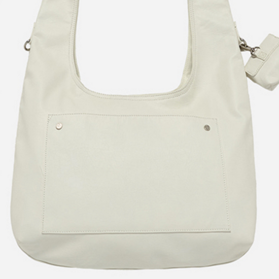 VEGAN LEATHER STITCH LOGO POINT SHOULDER BAG WHITE | Outer Fabric: 100% Polyurethane, Lining: 100% Polyester | Made in China
