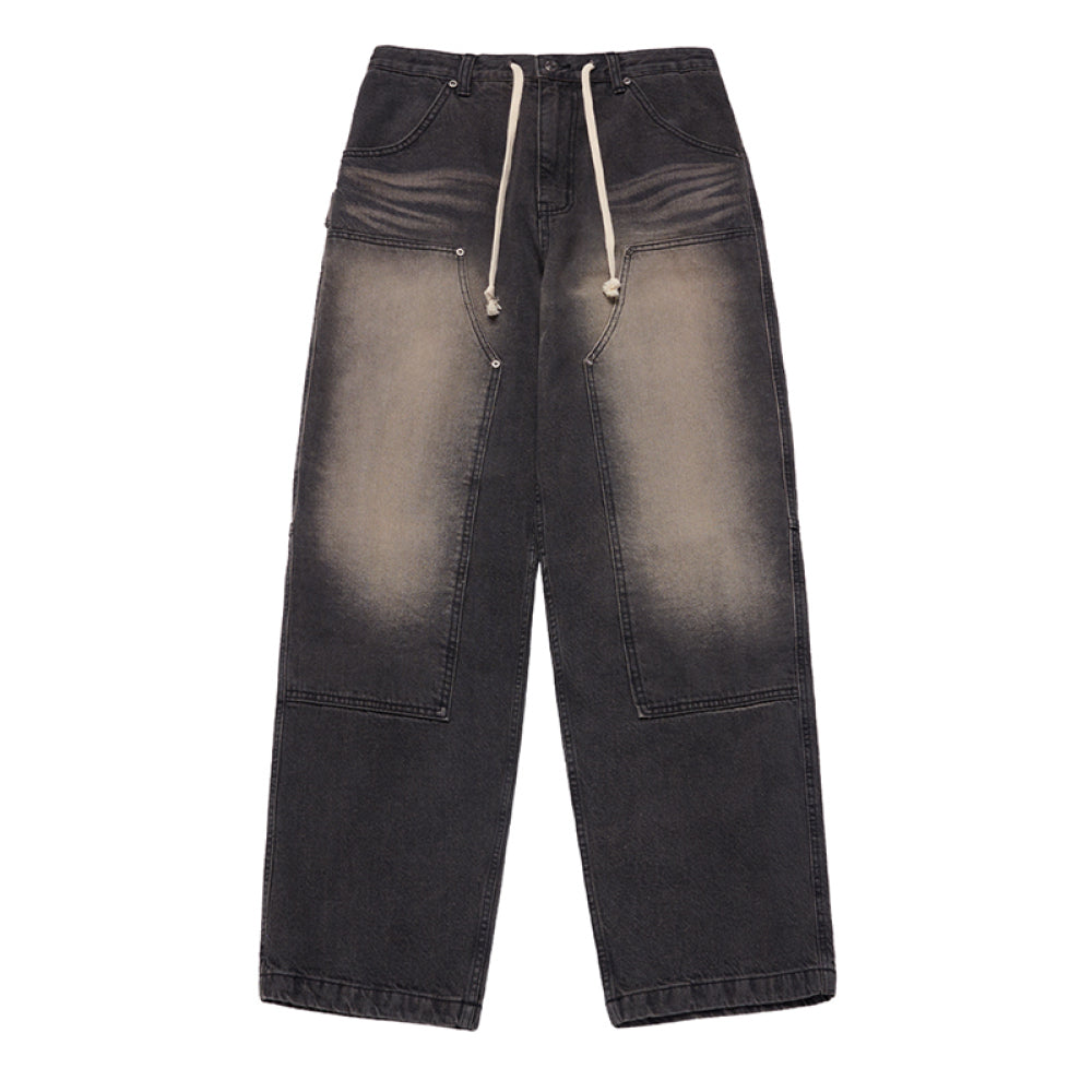 WAIST STRING CARPENTER DENIM PANTS BLACK