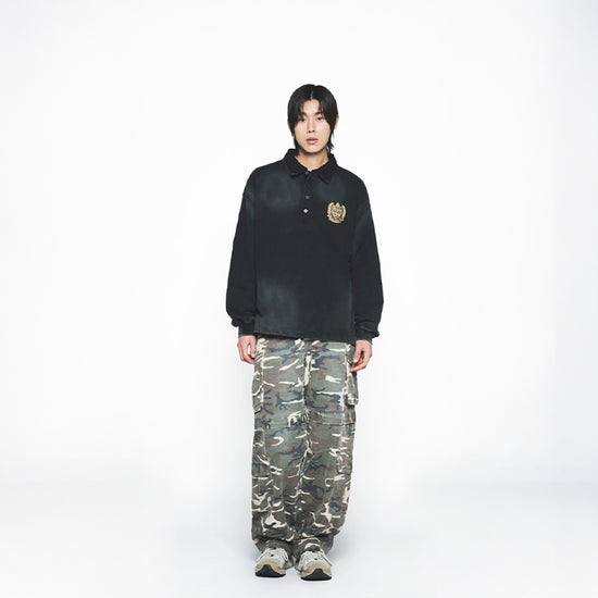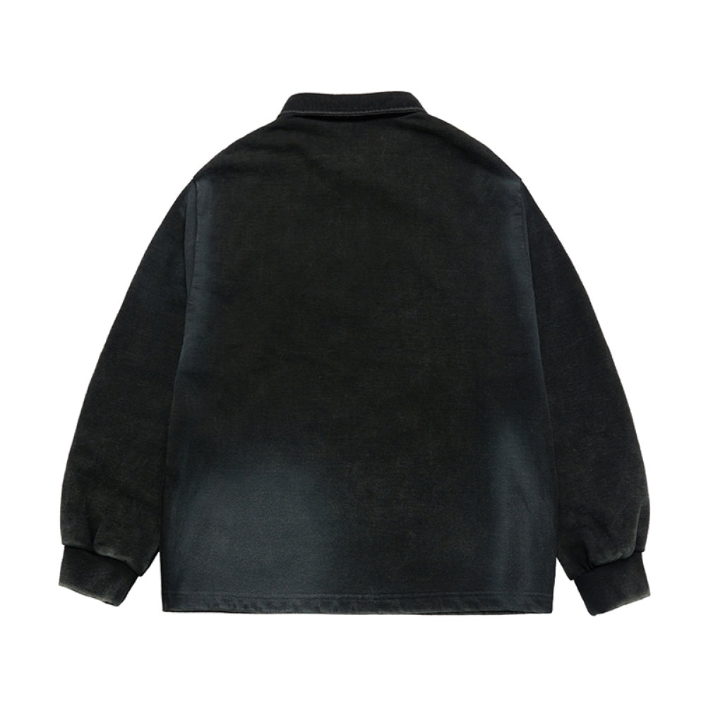 WASHING EMBO RUGBY SWEATSHIRT BLACK