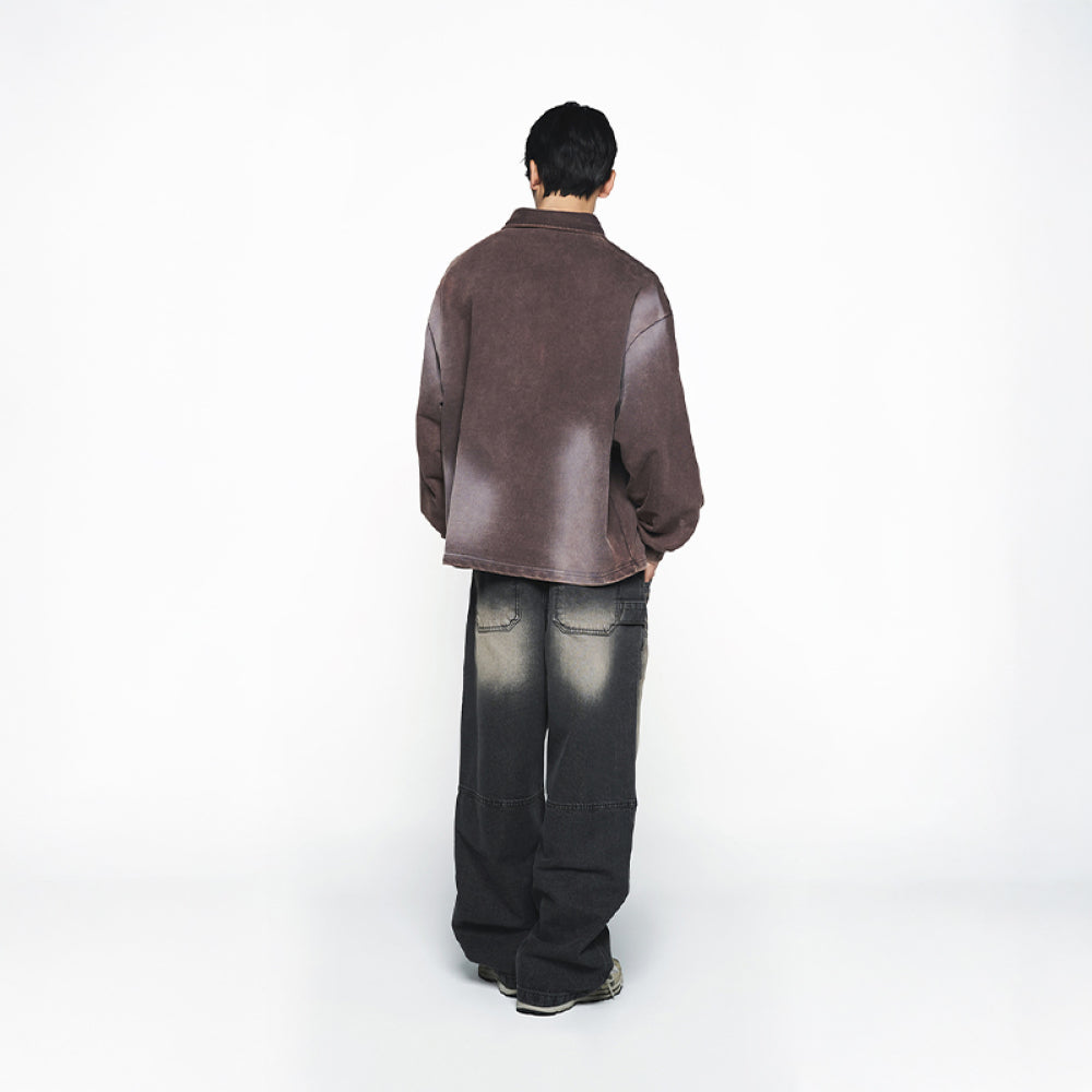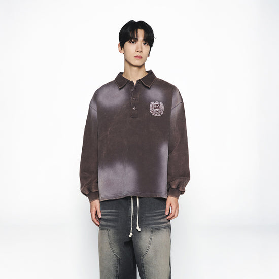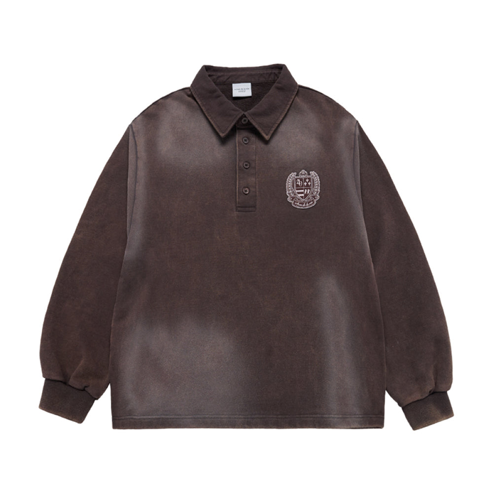 WASHING EMBO RUGBY SWEATSHIRT BROWN