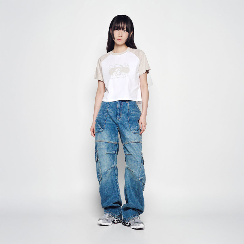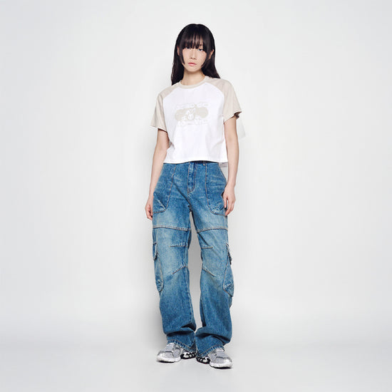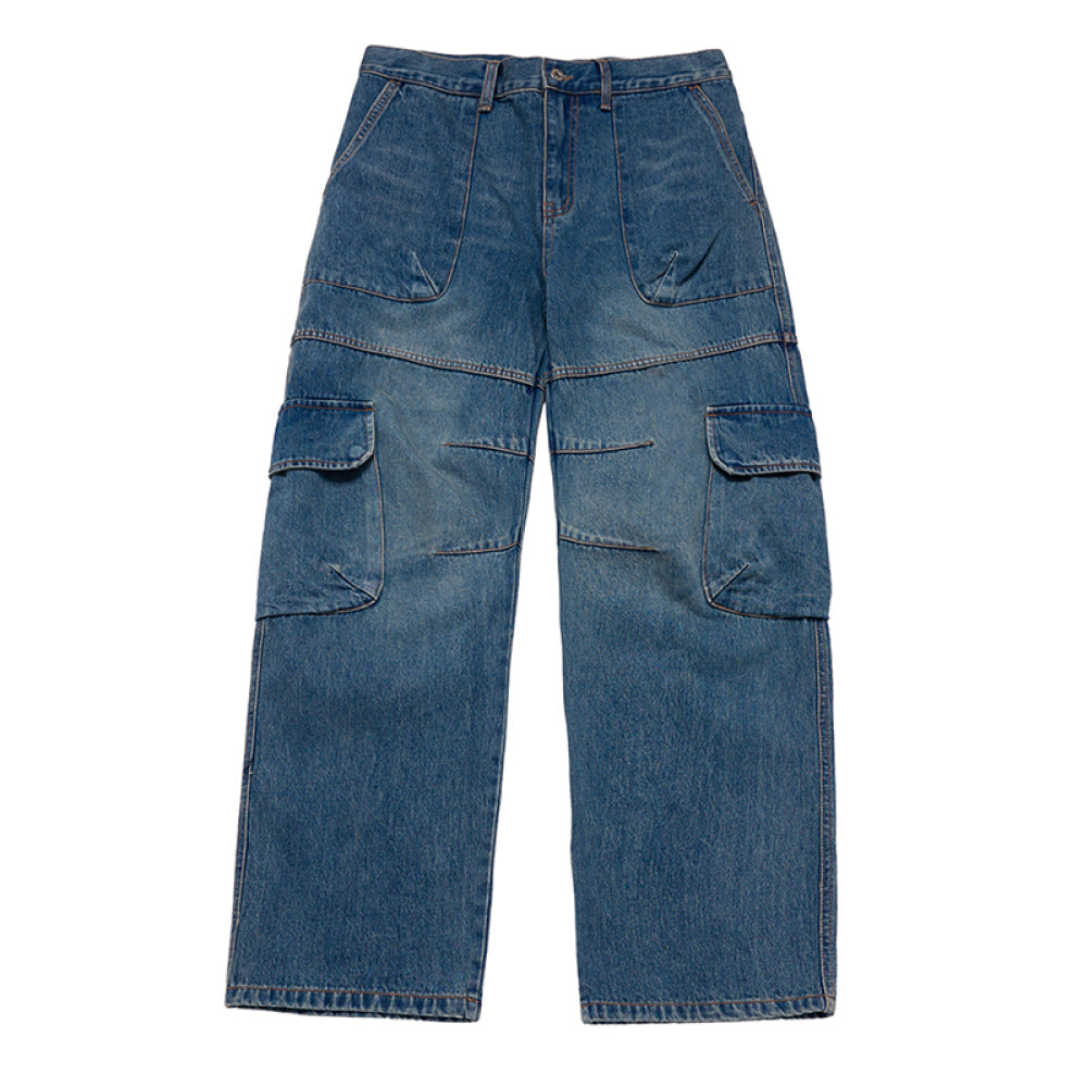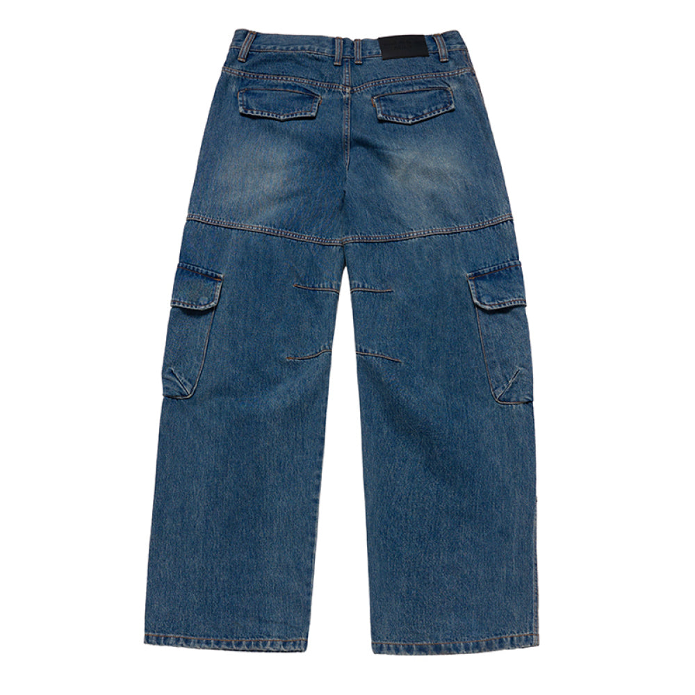 WIDE DENIM FATIGUE CARGO PANTS BLUE